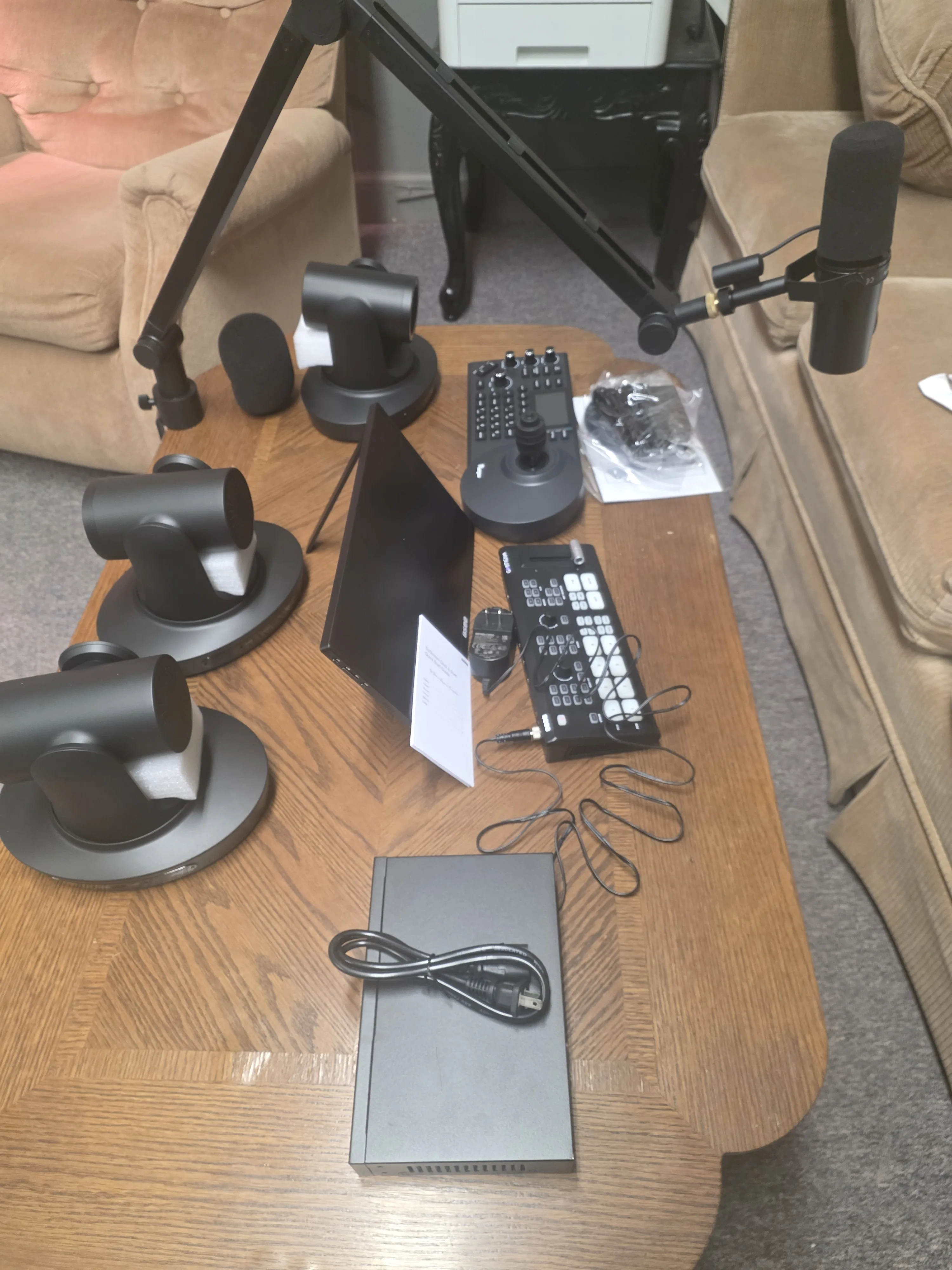 3 камеры ndi 4K 30x и комплект контроллера успешно настроены и протестированы